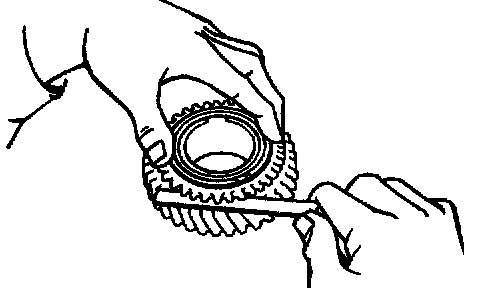 c. Using a feeler gauge, measure the clearance between the synchronizer ring back and gear spline end.