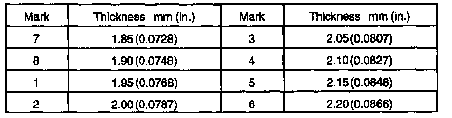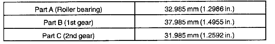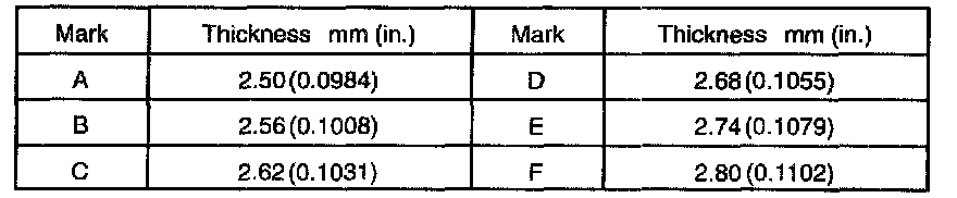 a. Select a snap ring from the table above that will make the thrust clearance of the front bearing inner race less than 0.1 mm (0.0039 inch).
