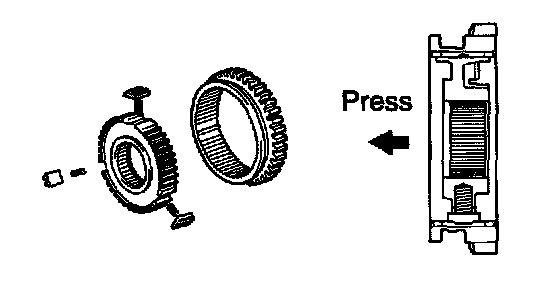 f. Using a press, press in the reverse gear and No. 1 clutch hub assembly.