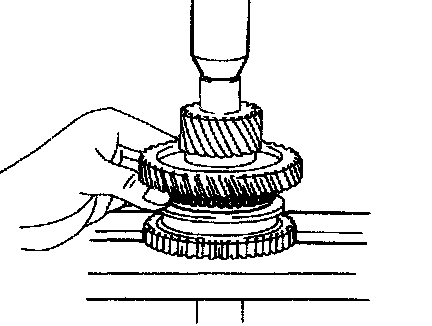 If the braking effect is insufficient, apply a small amount of the fine lapping compound between the synchronizer ring and gear cone. Lightly rub the synchronizer ring and gear cone together.
