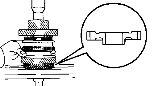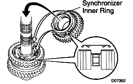 Turn the synchronizer ring in one direction while pushing it to the gear cone. Check that the ring locks.