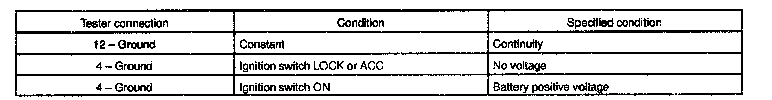 Disconnect the connector from the switch and inspect the connector on the wire harness side, as shown in the chart.