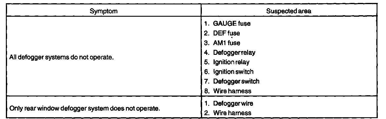 Problem Symptoms Table - Defogger System: