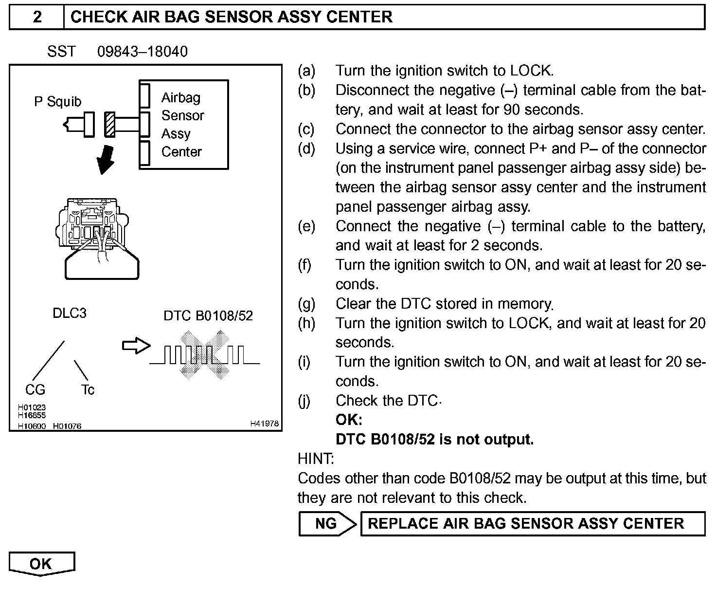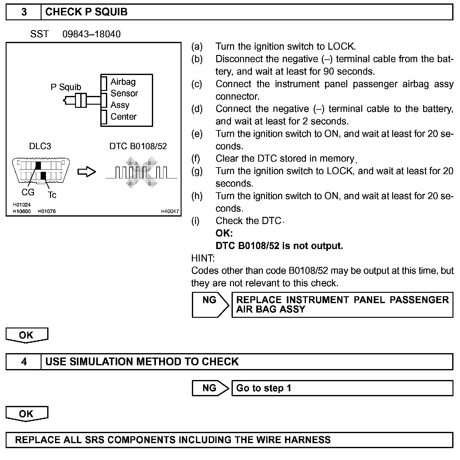 DTC B0108 SHORT IN P SQUIB CIRCUIT (TO B+)