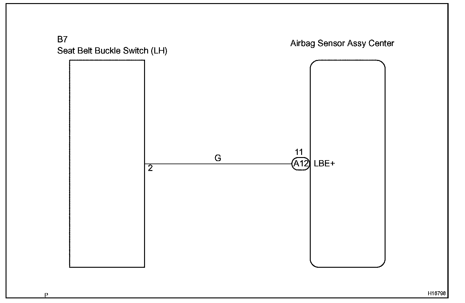 The seat belt buckle switch (LH) circuit consists of the airbag sensor assy center and front seat inner belt assy (LH).