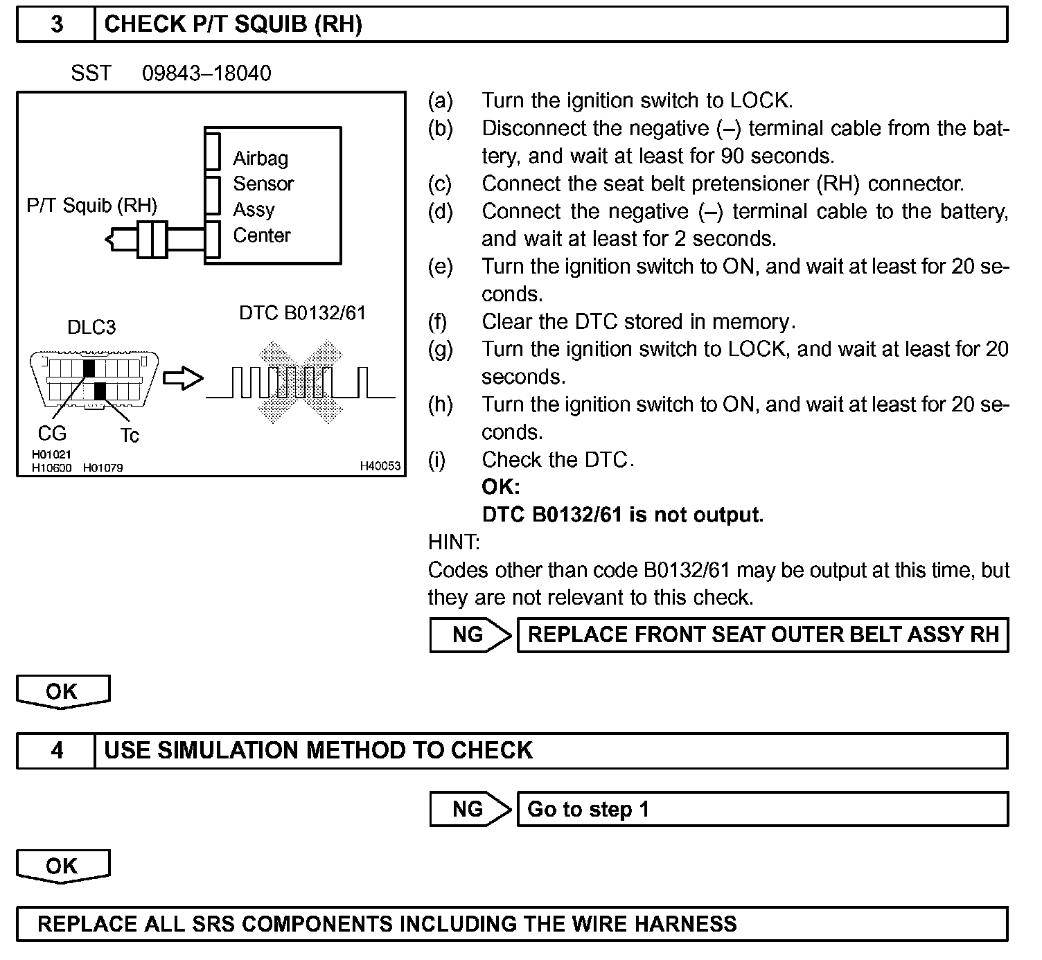 DTC B0132 SHORT IN P/T SQUIB (RH) CIRCUIT (TO GROUND)