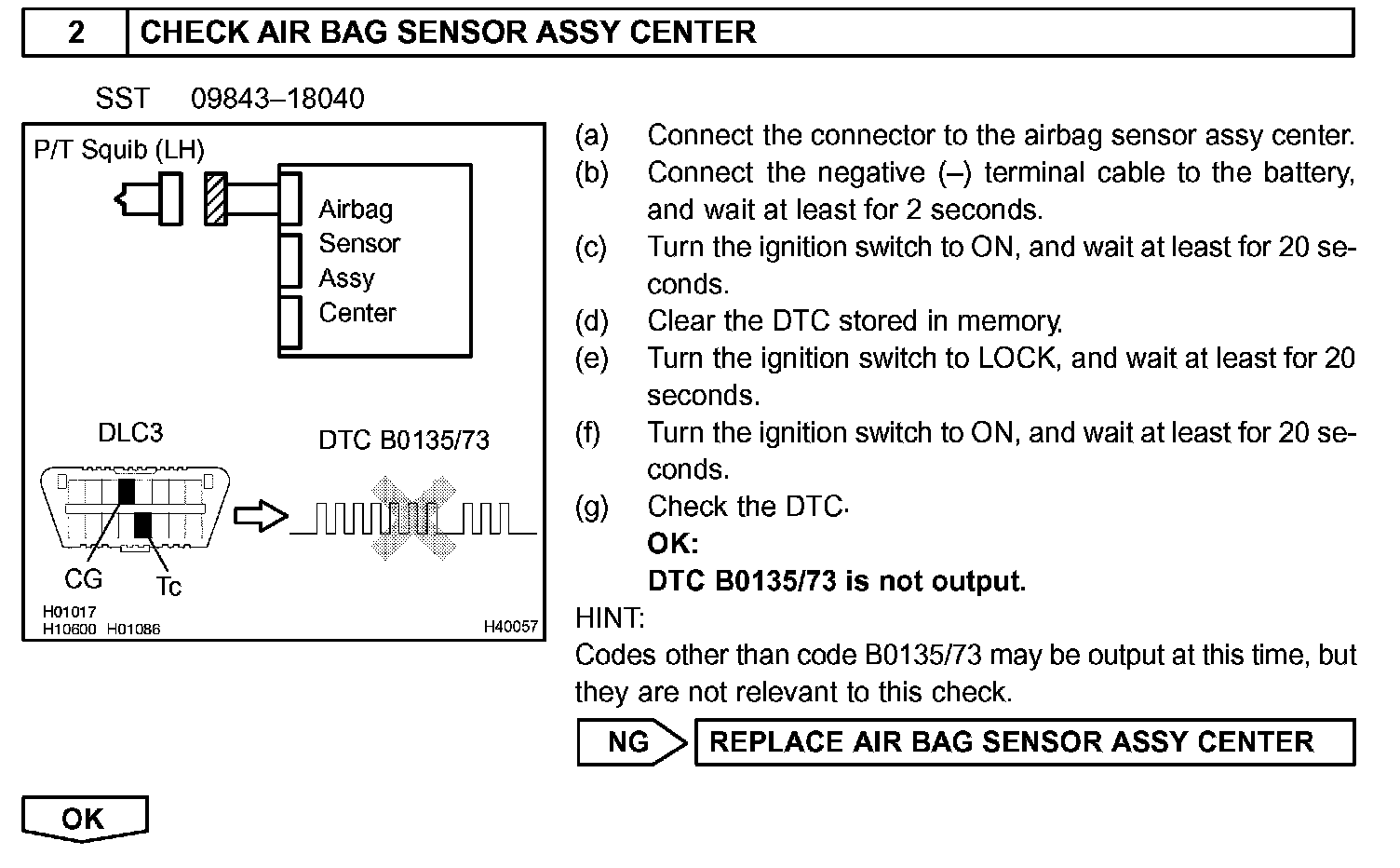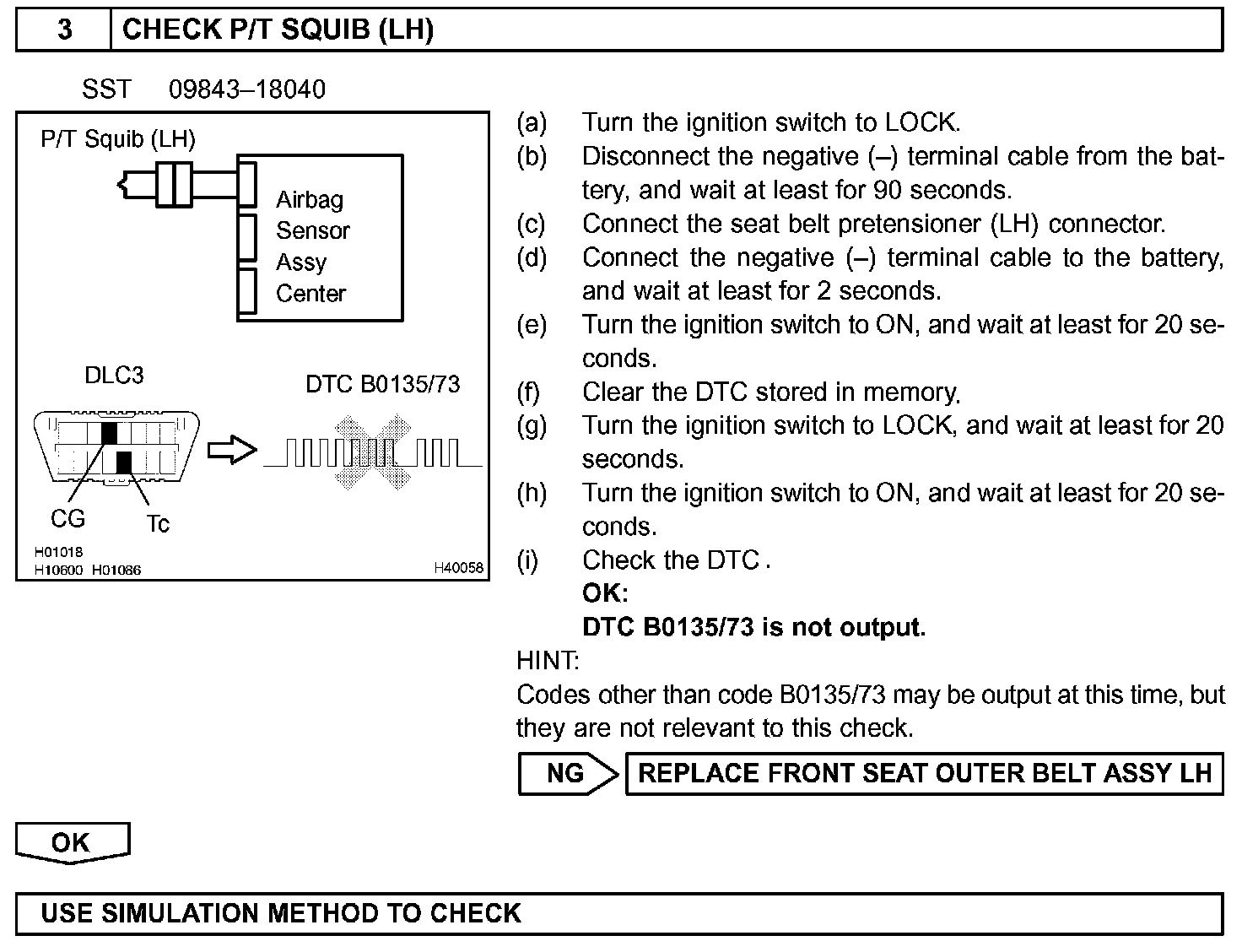 DTC B0135/73 is recorded when a short is detected in the P/T squib (LH) circuit.