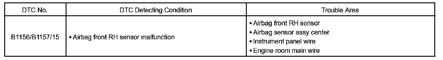 DTC B1156/B1157/15 is recorded when a malfunction is detected in the airbag front RH sensor circuit.
