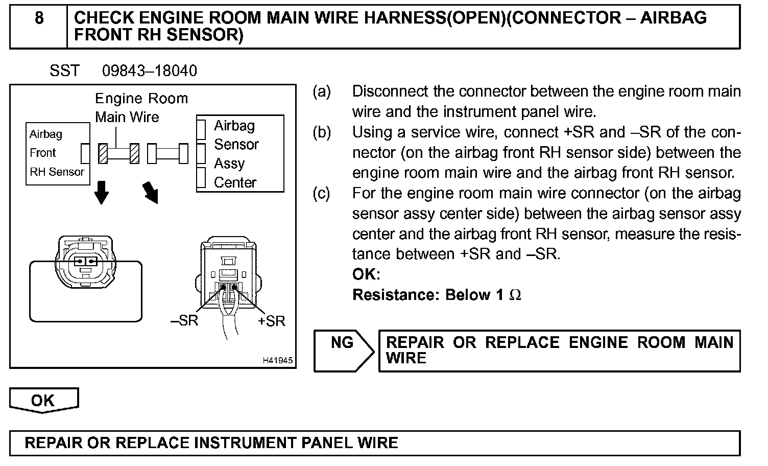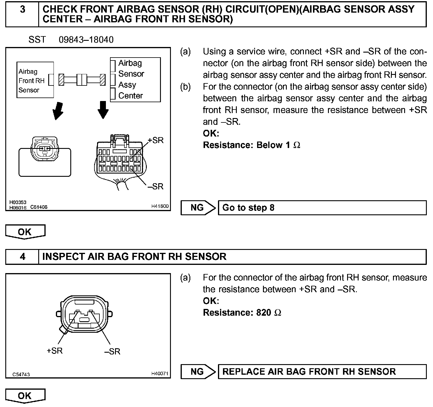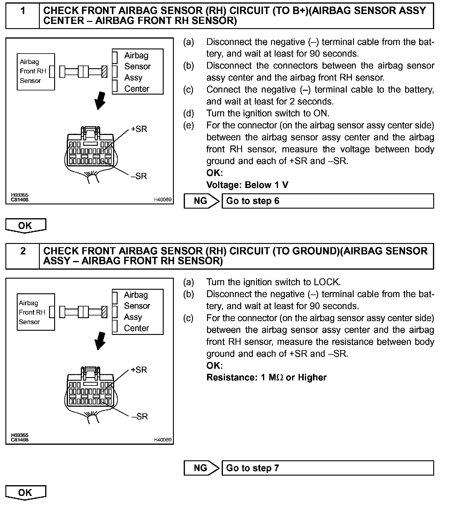 The airbag front RH sensor circuit consists of the airbag sensor assy center and airbag front RH sensor.