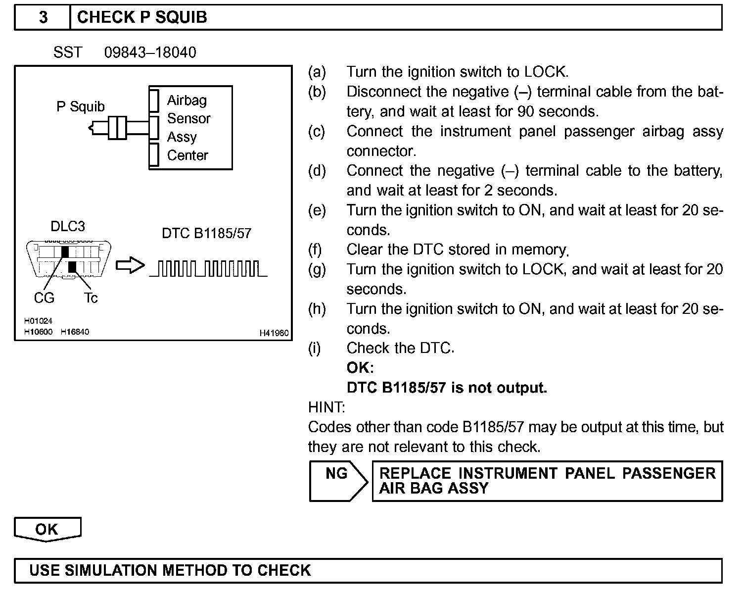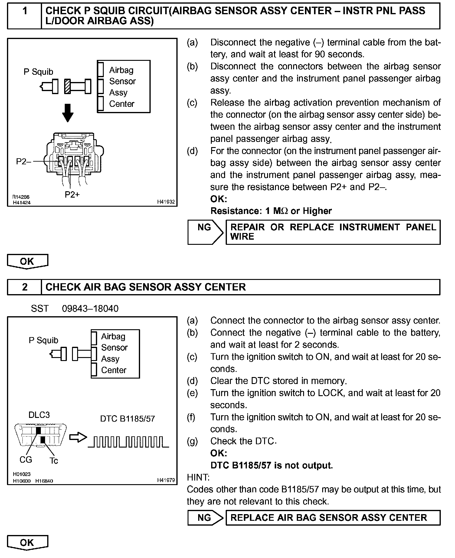 DTC B1185 SHORT IN P SQUIB (2ND STEP) CIRCUIT