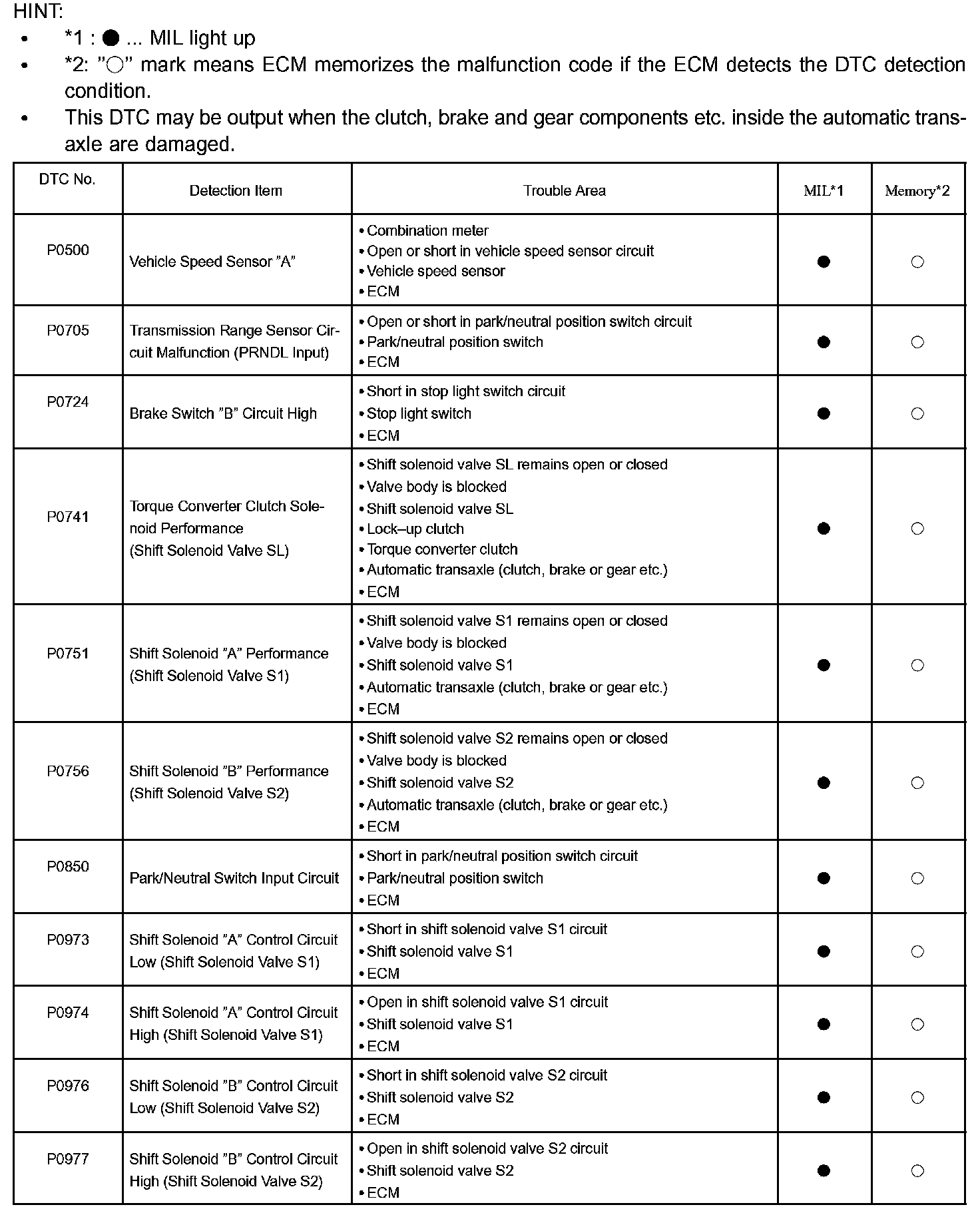 If a DTC is displayed during the DTC check, check the circuit listed in the table.