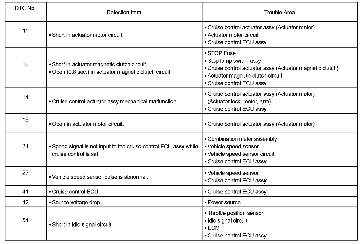 If a malfunction code is displayed during the DTC check, check the circuit listed for that code in the table.