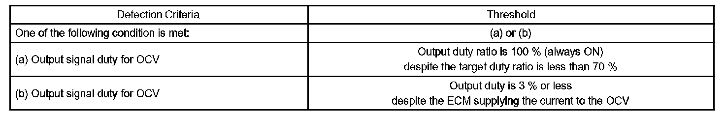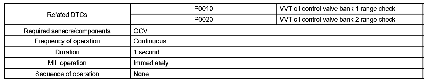 After the ECM sends the "target" duty-cycle signal to the OCV, the ECM monitors the OCV current to establish an "actual" duty-cycle. The ECM detects a malfunction and sets a DTC when the actual duty-cycle ratio varies from the target duty-cycle ratio.