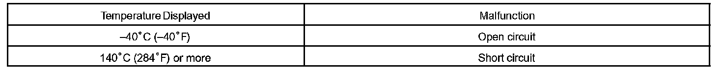 Example: When the sensor voltage output equal to -40 °C (-40 °F), or more than 140 °C (284 °F).