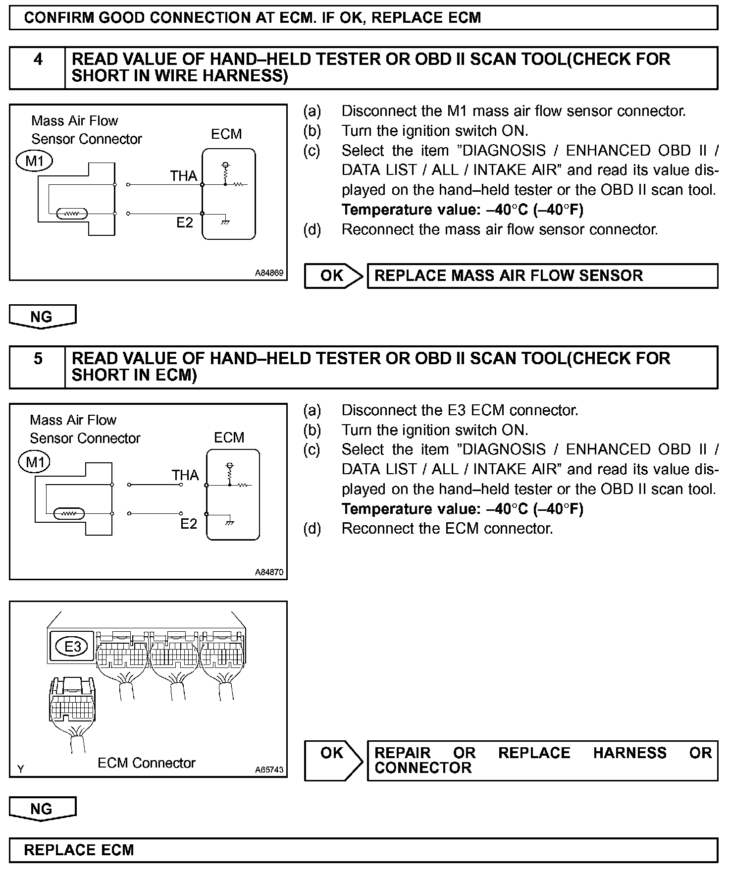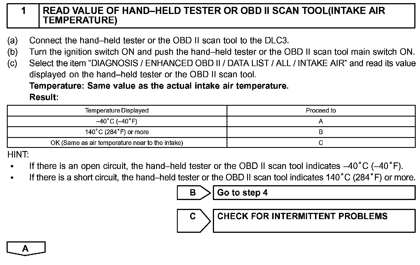 HINT: After confirming DTC P0110, P0112 or P0113, confirm the intake air temperature in the "DIAGNOSIS/ENHANCED OBD II/DATA LIST/ALL" using the hand-held tester or the OBD II scan tool.