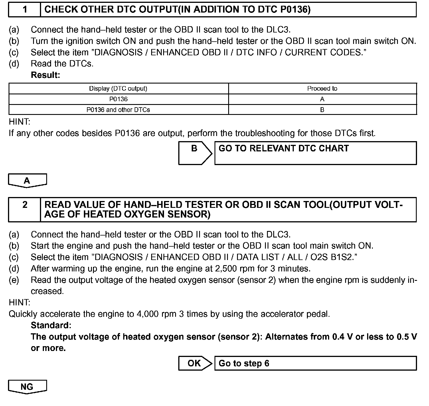 DTC P0136 OXYGEN SENSOR CIRCUIT MALFUNCTION (BANK 1 SENSOR 2)CIRCUIT DESCRIPTION