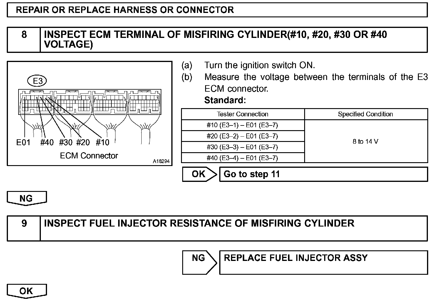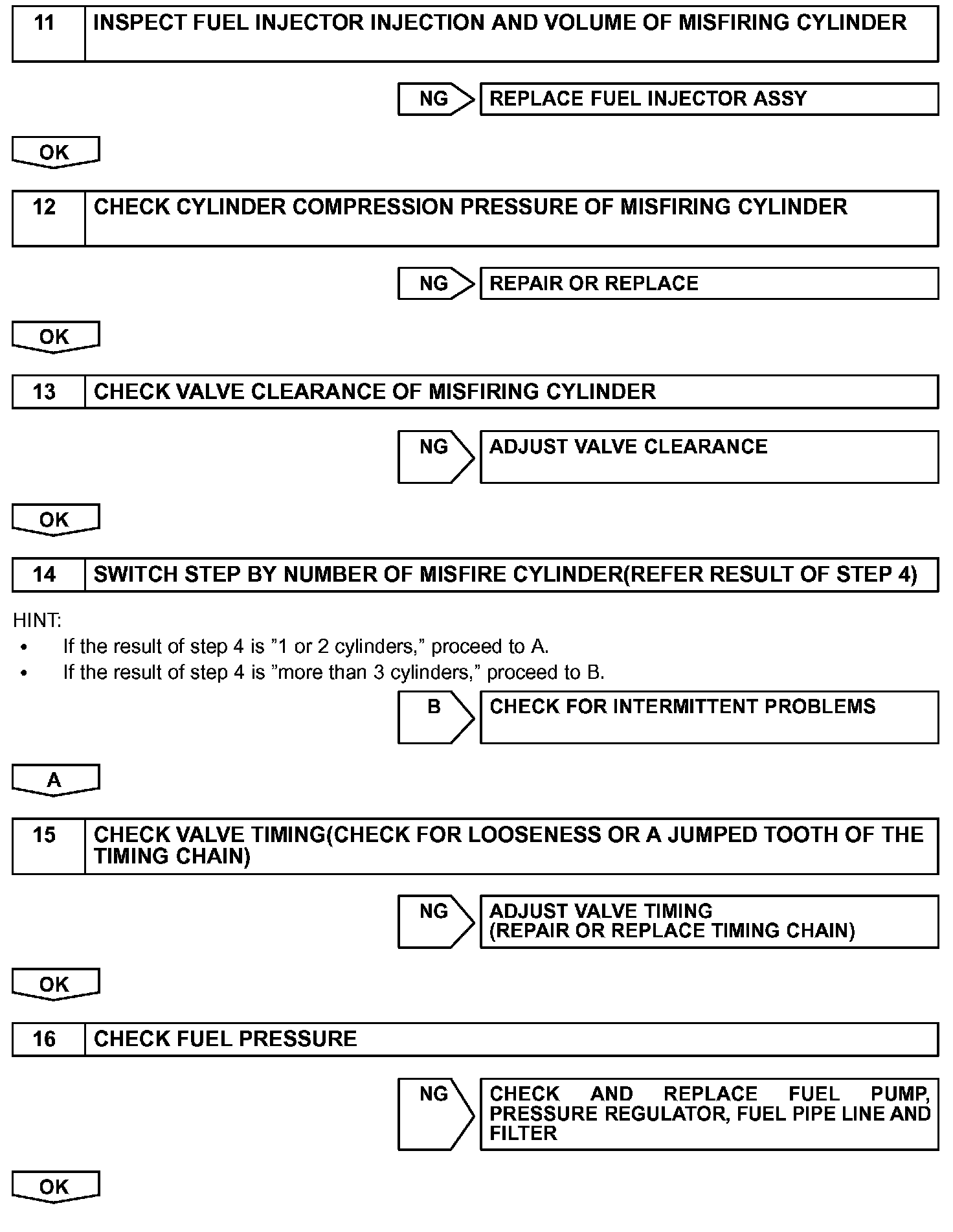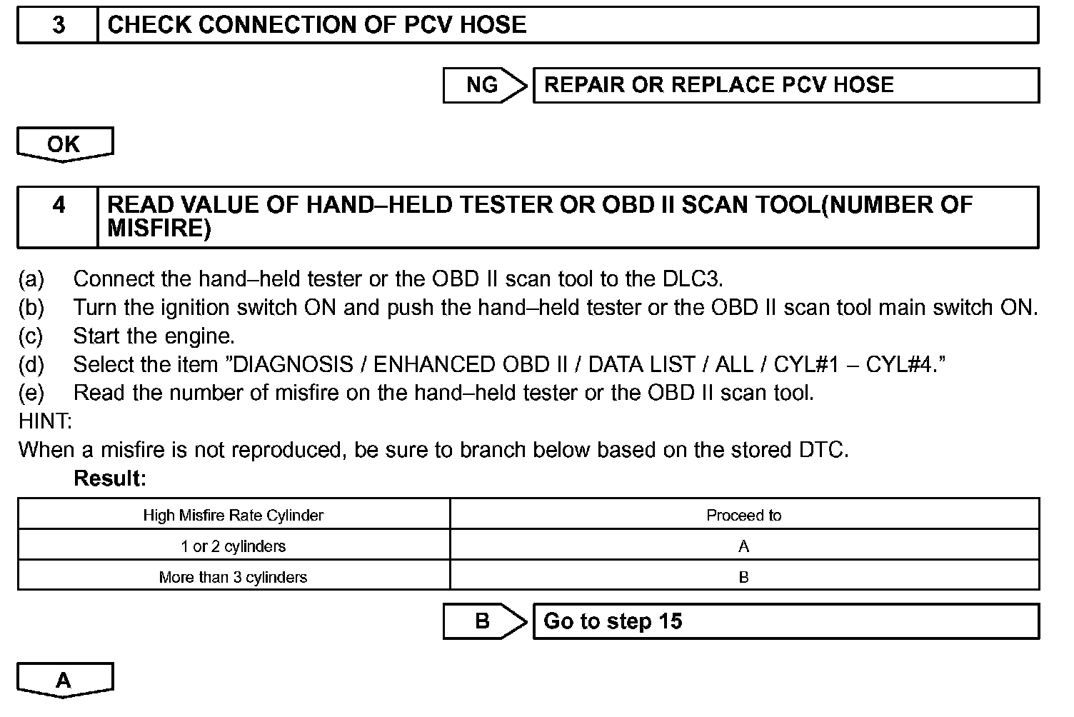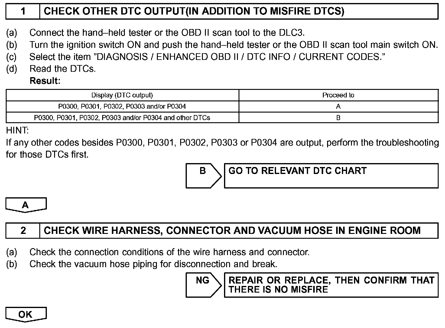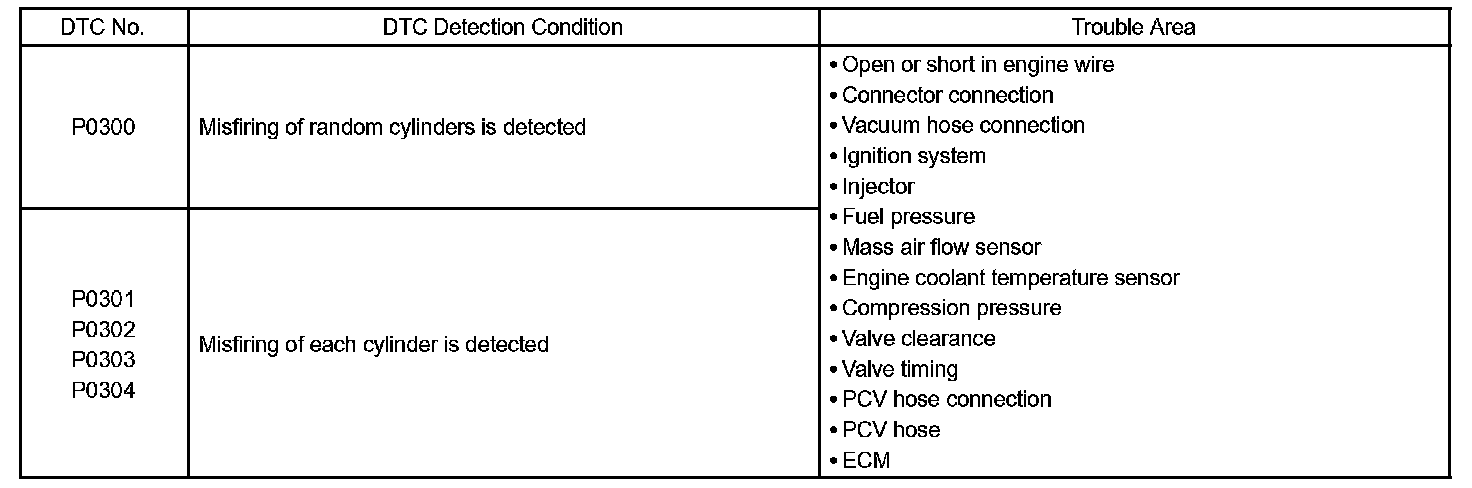 - If DTCs besides misfire are memorized simultaneously, first perform the troubleshooting for them.