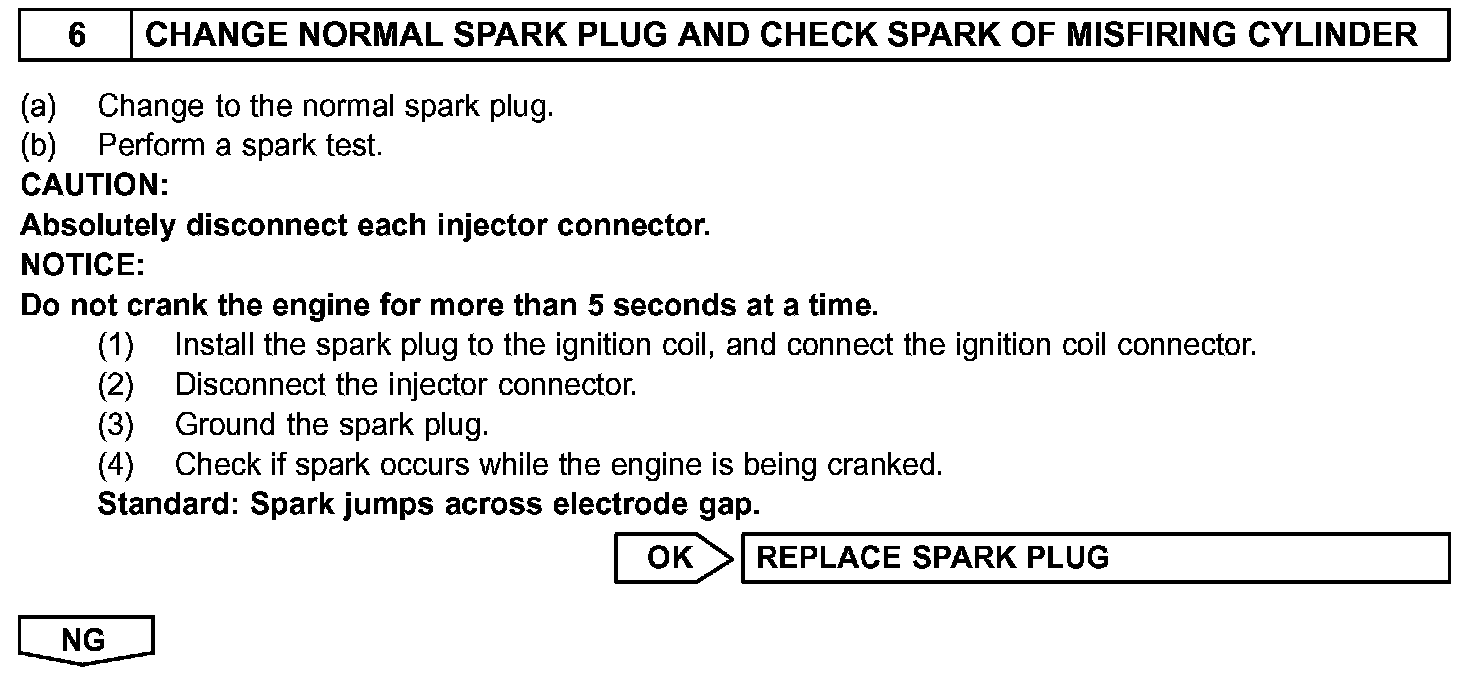 - If the misfire cannot be reproduced, the reason may be because of the driving the vehicle with lack of fuel, the use of improper fuel, a stain on the ignition plug, etc.