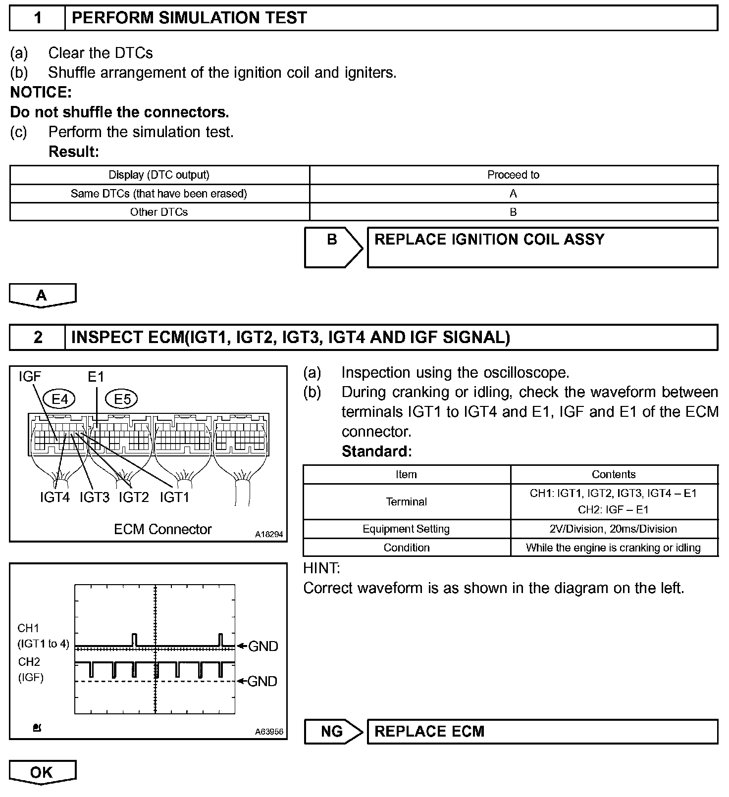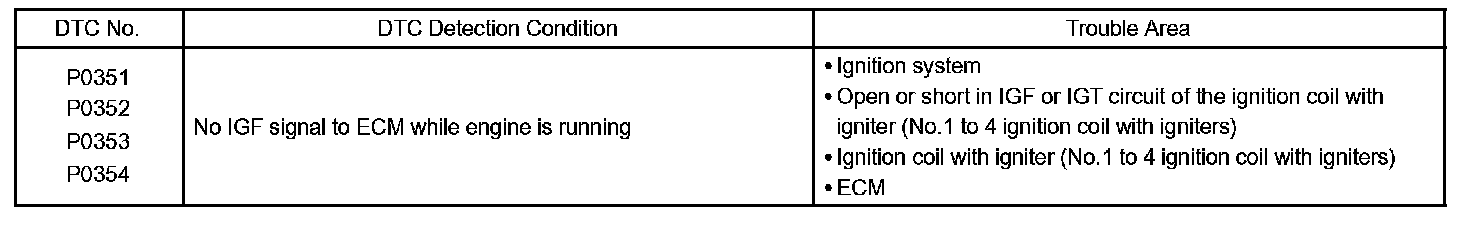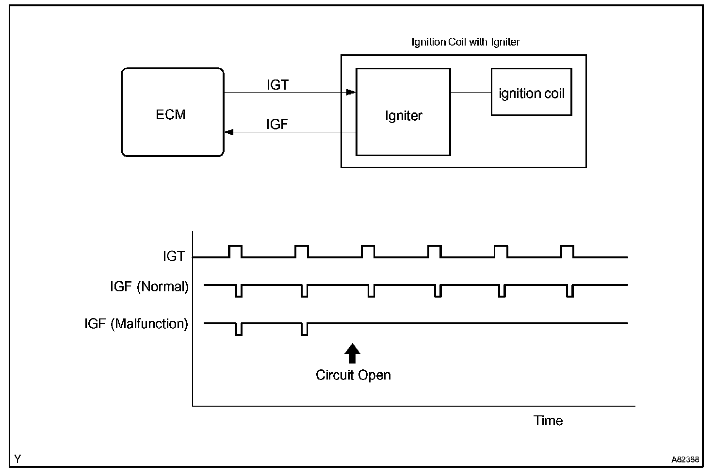 If the ECM does not receive the ignition confirmation (IGF) signal despite sending the (IGT) ignition signal, the ECM interprets this as a fault in the igniter and sets a DTC.