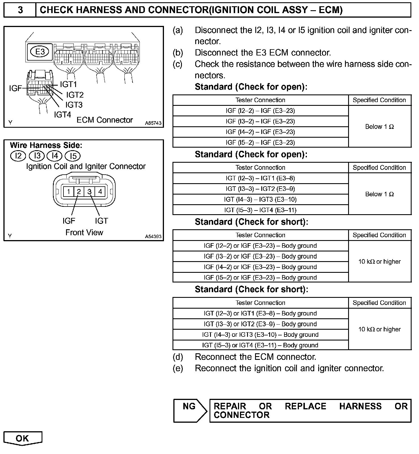 - If DTC P0353 is present, check the No.3 ignition coil with igniter circuit.