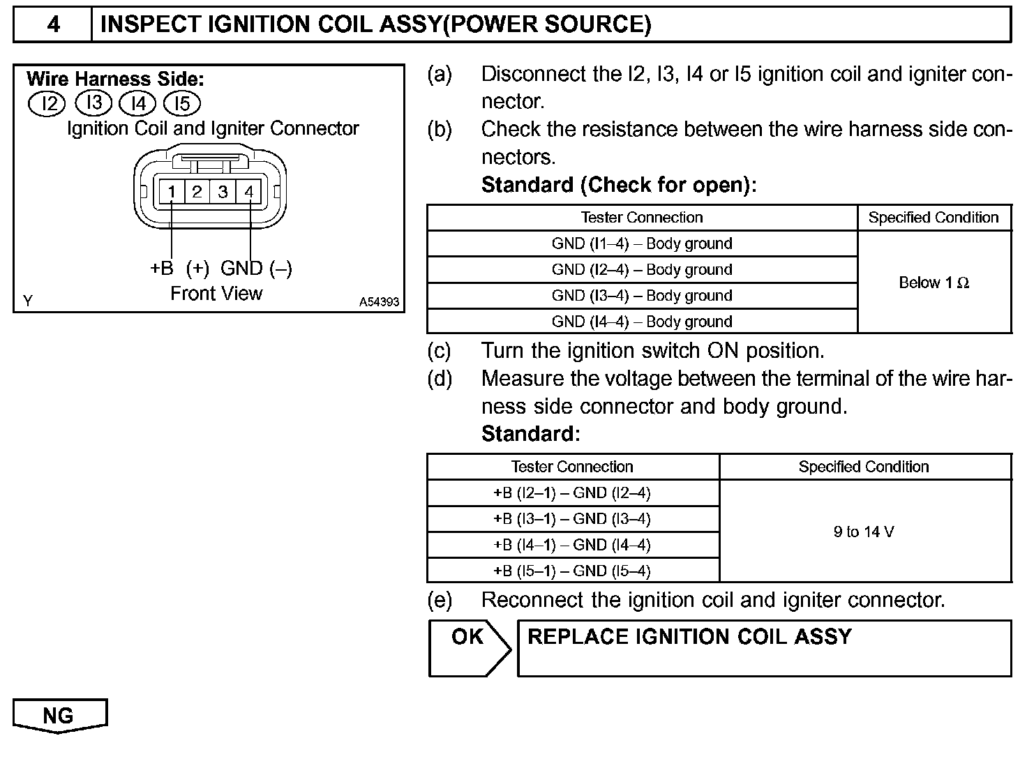 - If DTC P0354 is present, check the No.4 ignition coil with igniter circuit.