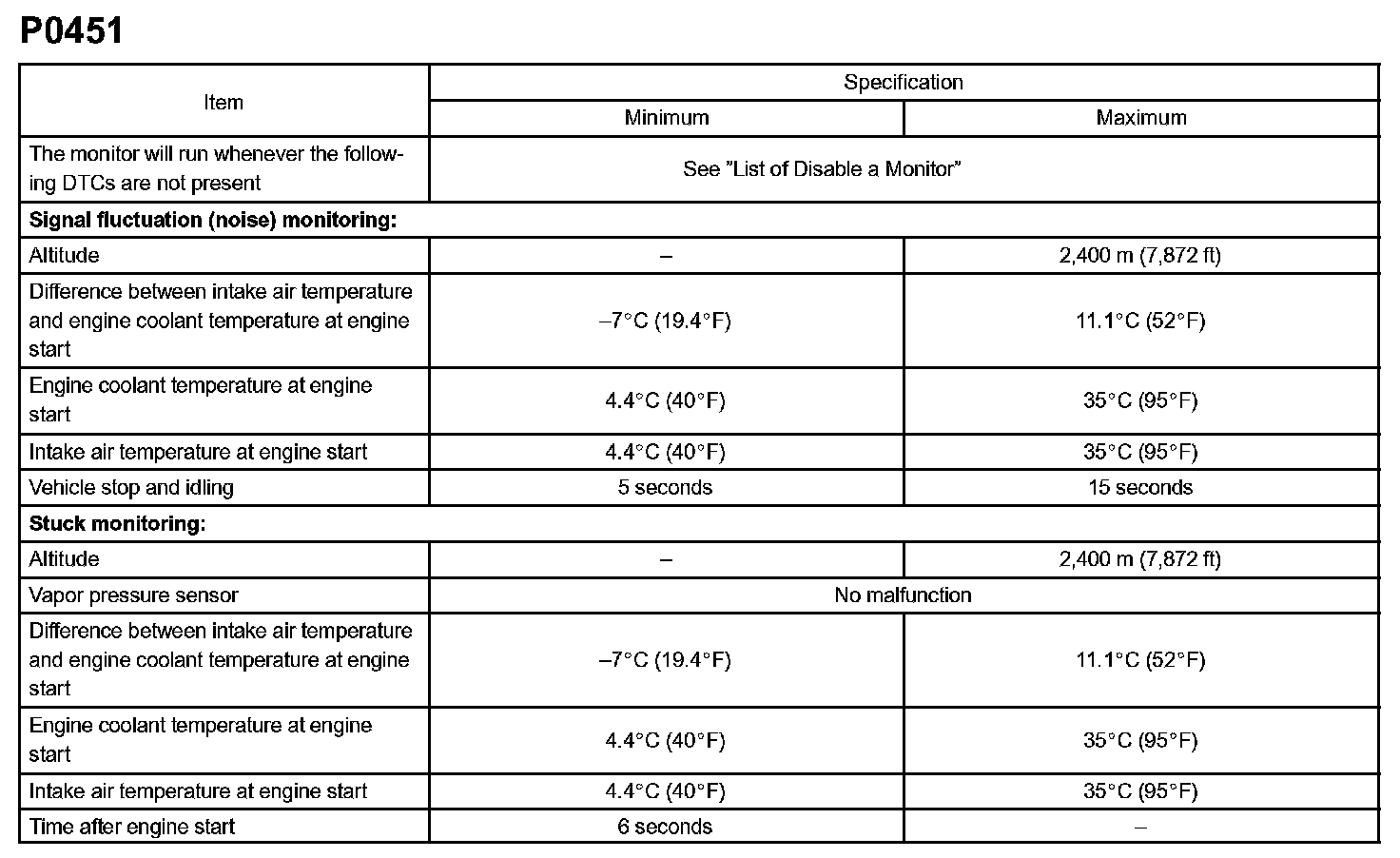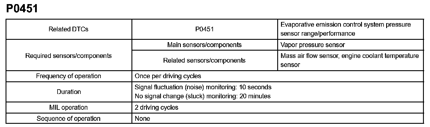 DTC P0451 EVAPORATIVE EMISSION CONTROL SYSTEM PRESSURE SENSOR RANGE/PERFORMANCEMONITOR DESCRIPTION