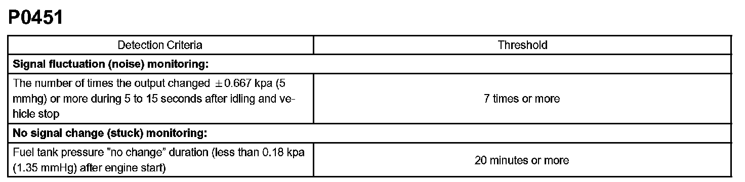 For this DTC P0451, the ECM checks for a "noisy" sensor or a "stuck" sensor.