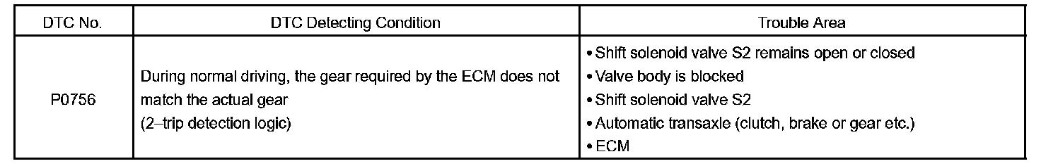 DTC P0756 SHIFT SOLENOID "B" PERFORMANCE (SHIFT SOLENOID VALVE S2)SYSTEM DESCRIPTION