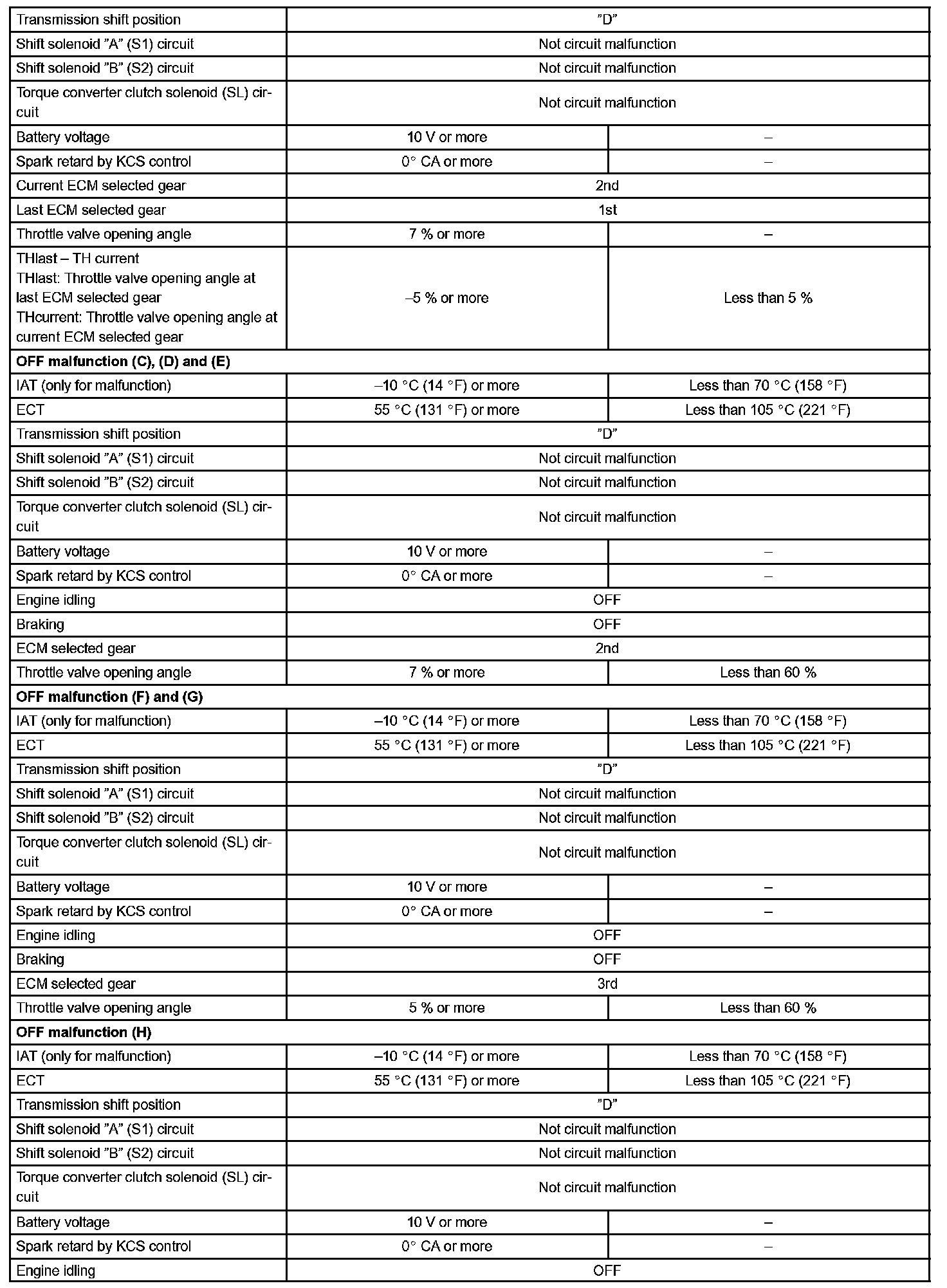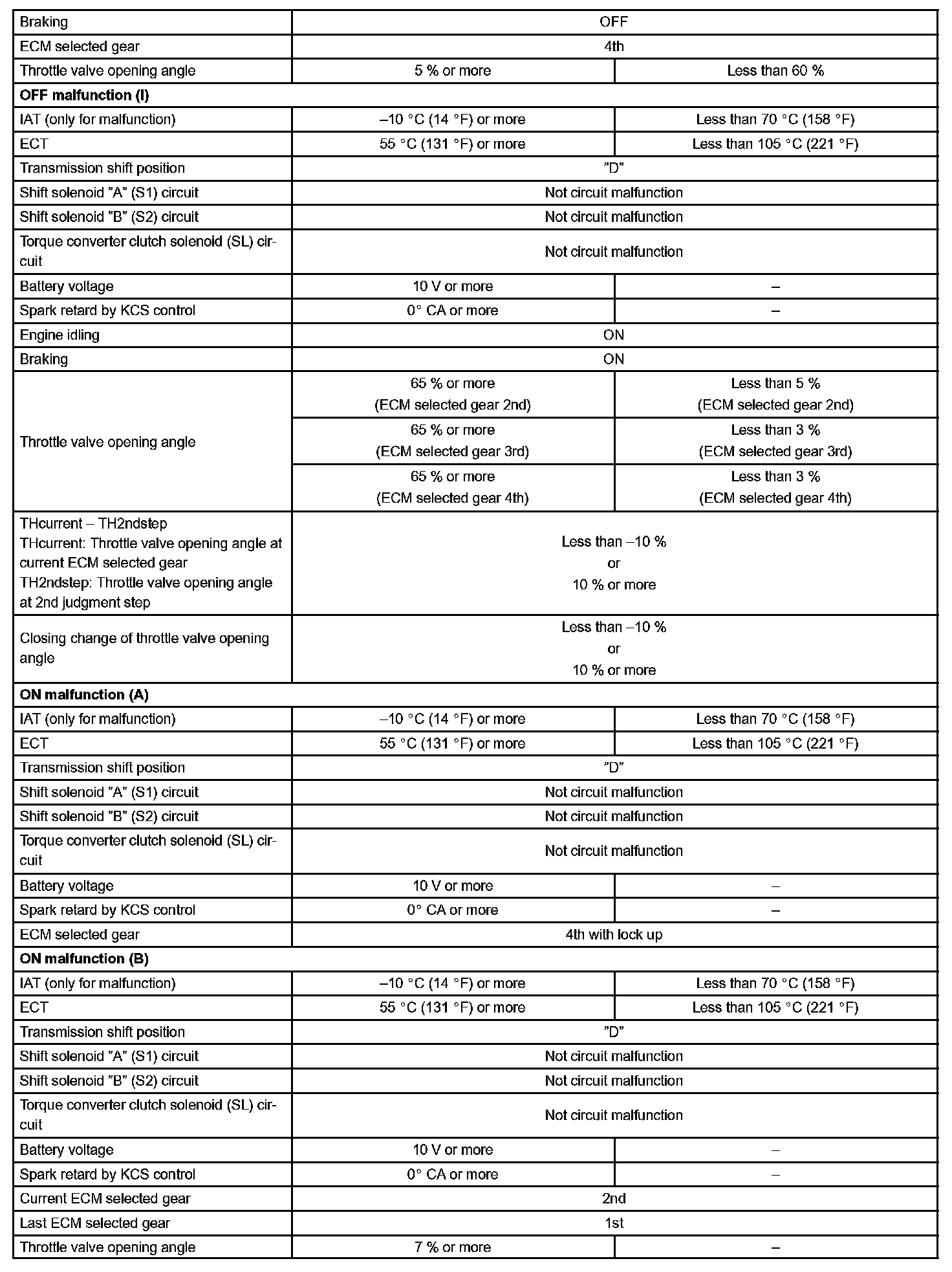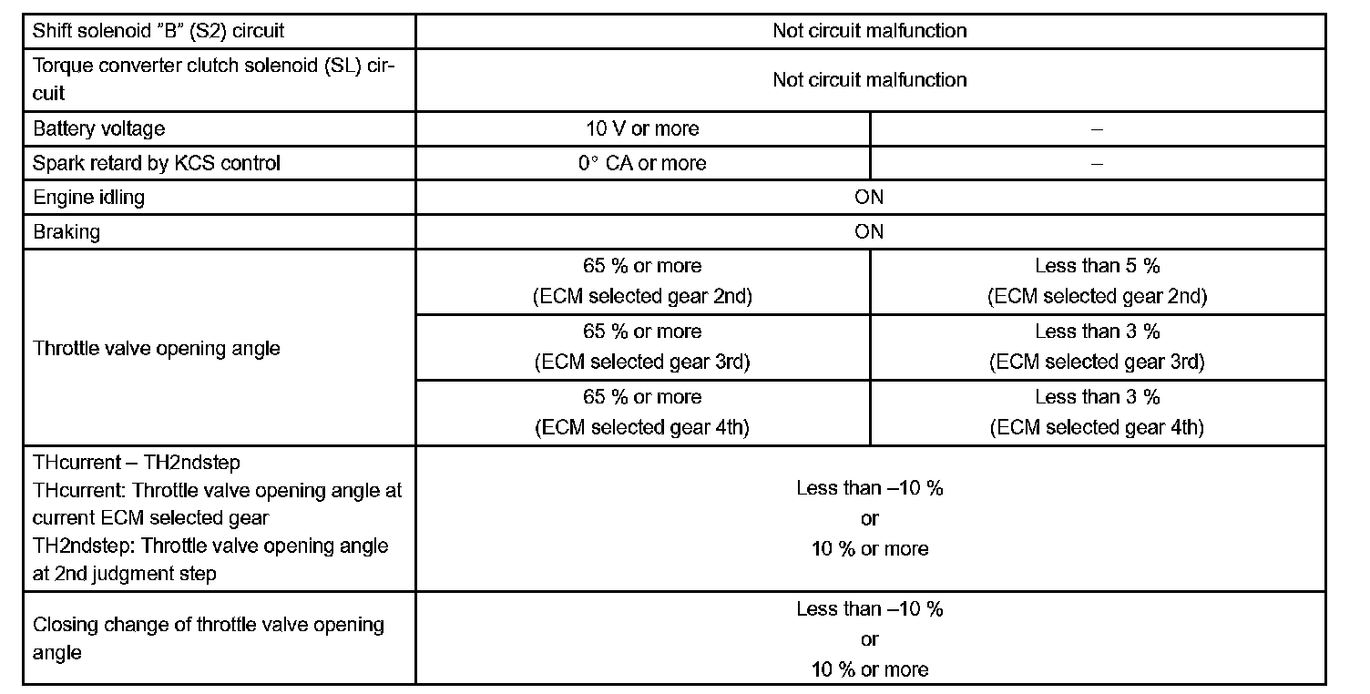 Then the ECM compares the actual gear with the shift schedule in the ECM memory to detect the mechanical trouble of the shift solenoid valves, the valve body or automatic transaxle (clutch, brake or gear etc.).