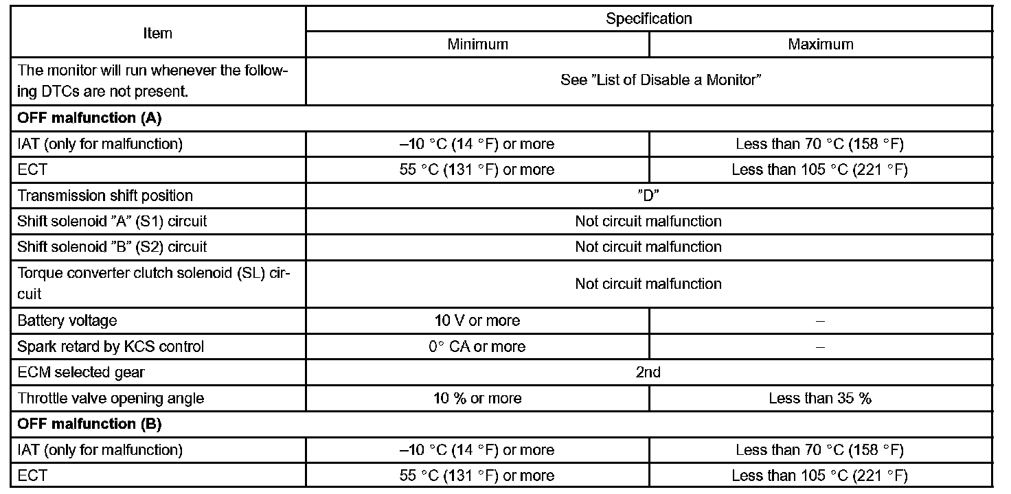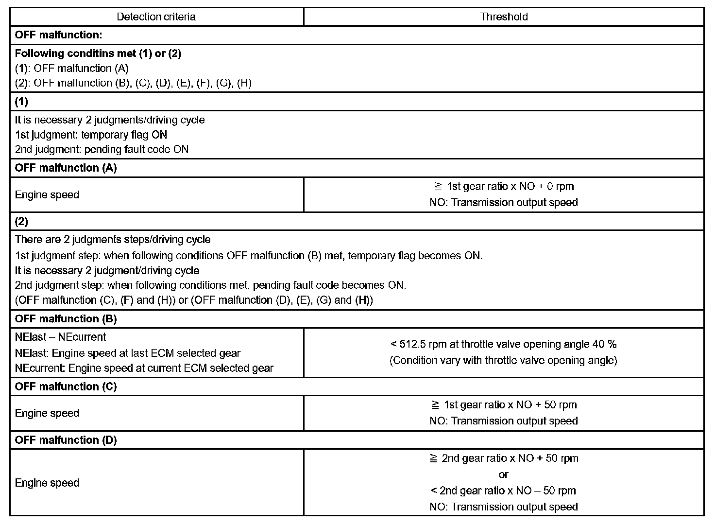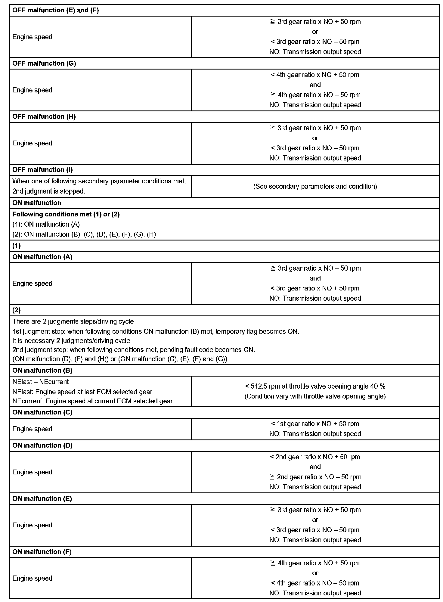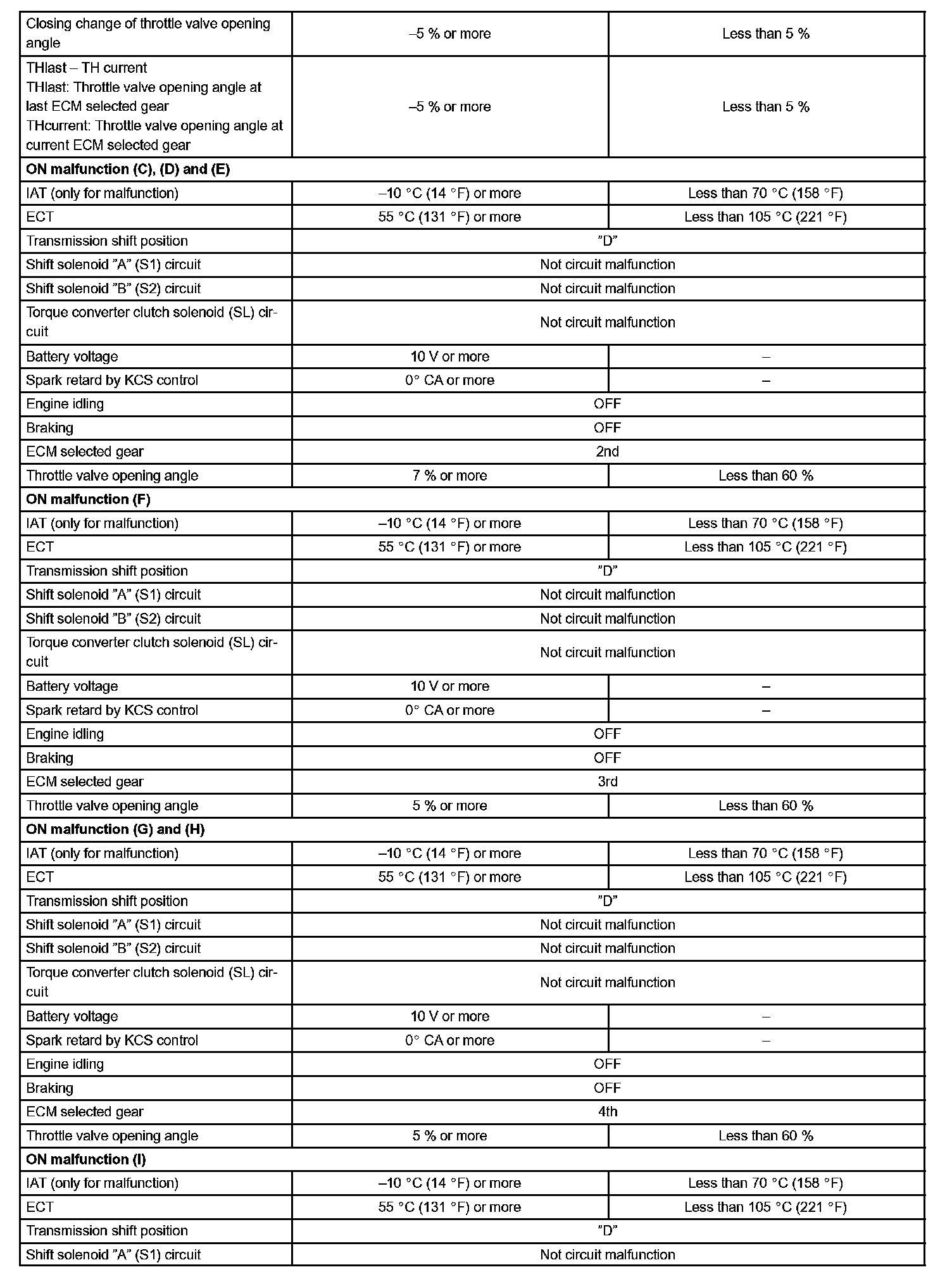 Then the ECM compares the actual gear with the shift schedule in the ECM memory to detect the mechanical trouble of the shift solenoid valves, the valve body or automatic transaxle (clutch, brake or gear etc.).