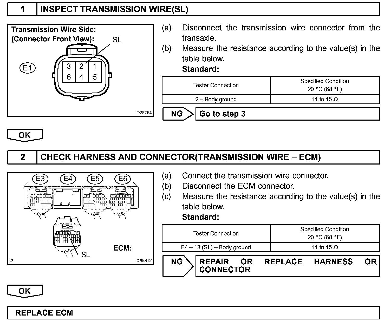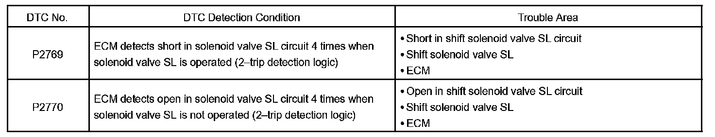 If the ECM detects a malfunction, it turns the shift solenoid valve SL OFF.
