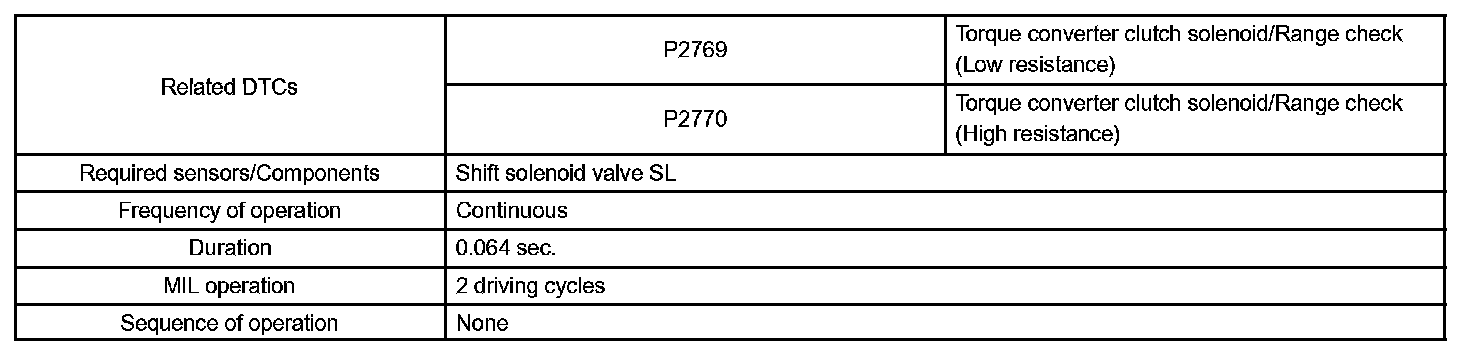 DTC P2770 TORQUE CONVERTER CLUTCH SOLENOID CIRCUIT HIGH (SHIFT SOLENOID VALVE SL)CIRCUIT DESCRIPTION