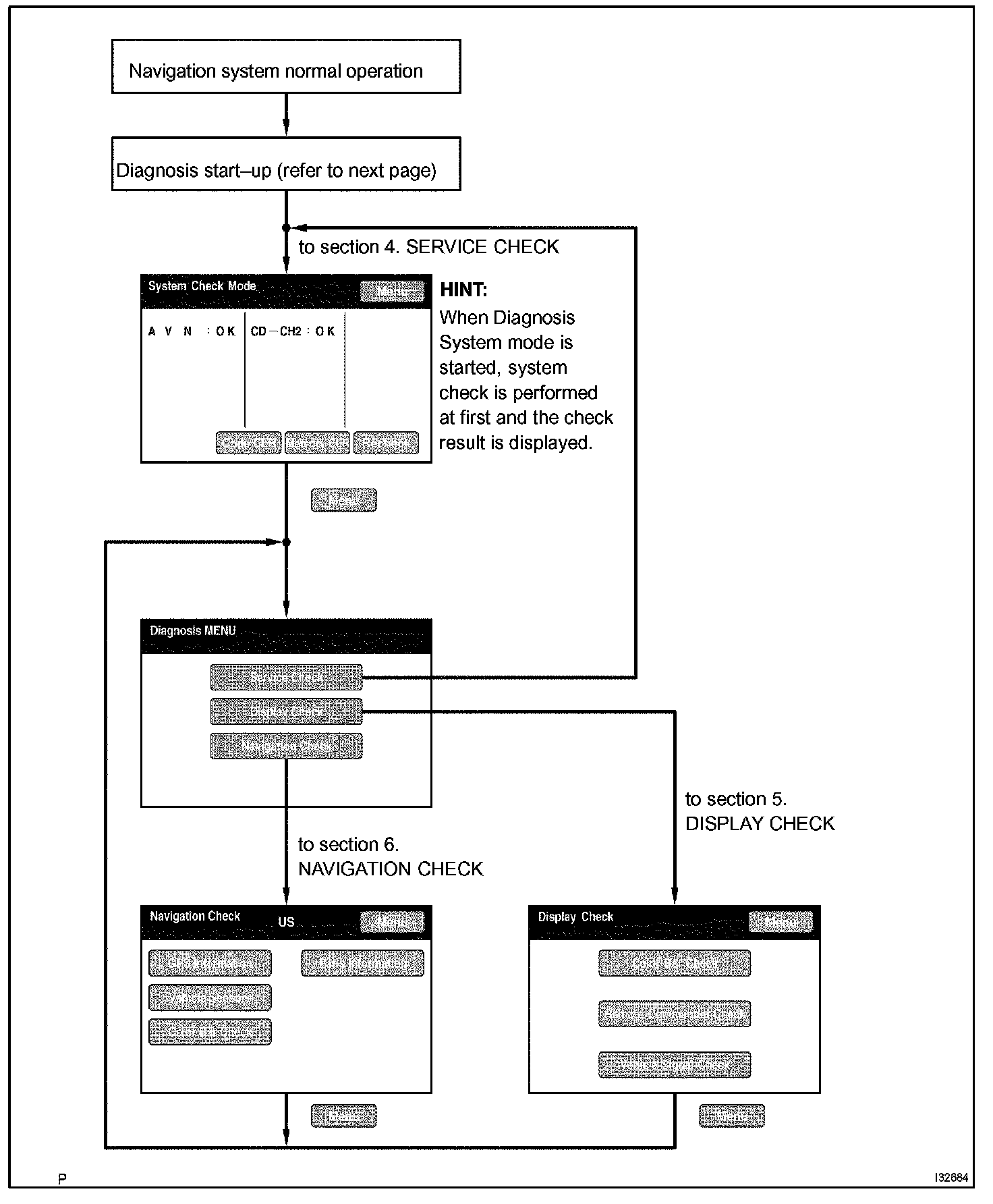 HINT: Before starting the Diagnosis System, make sure that the map appears on the screen after turning on the IG switch.