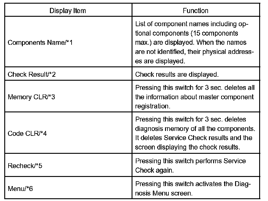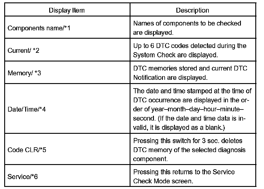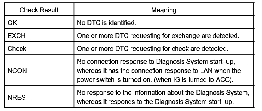 HINT: Service Check displays the check results based on the information obtained from each components response to "System Check Execution" and "Diagnosis Memory Request", and the information of "Current DTC Notification". (the Unit Check information that will be displayed on the next screens.)