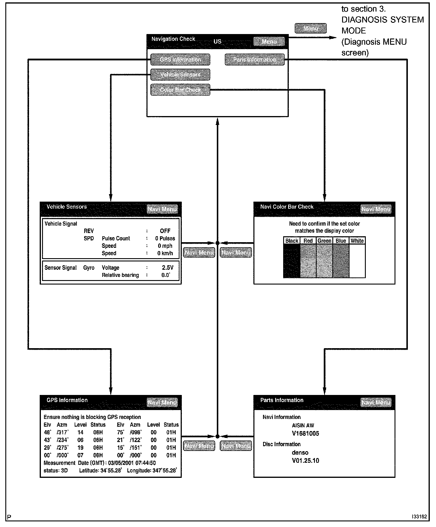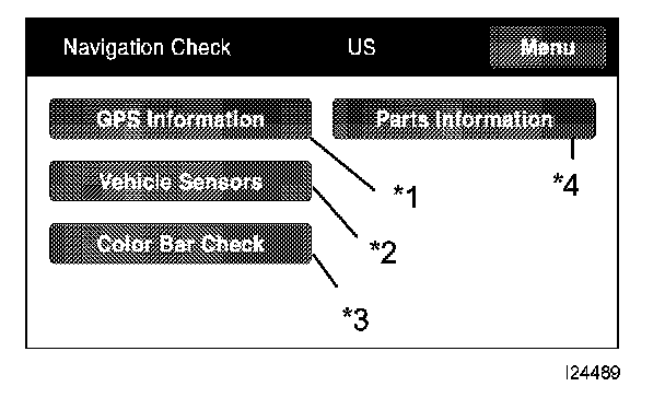 - The Navigation ECU operates each Navigation Check screen.