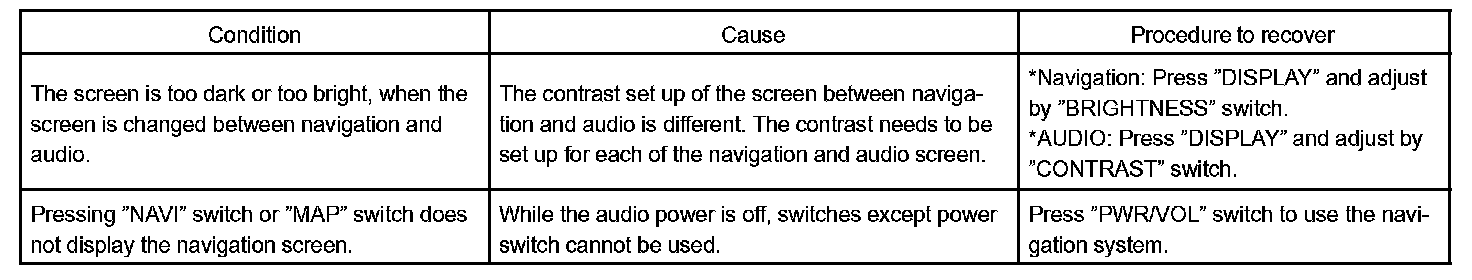 Problem Symptoms Table: