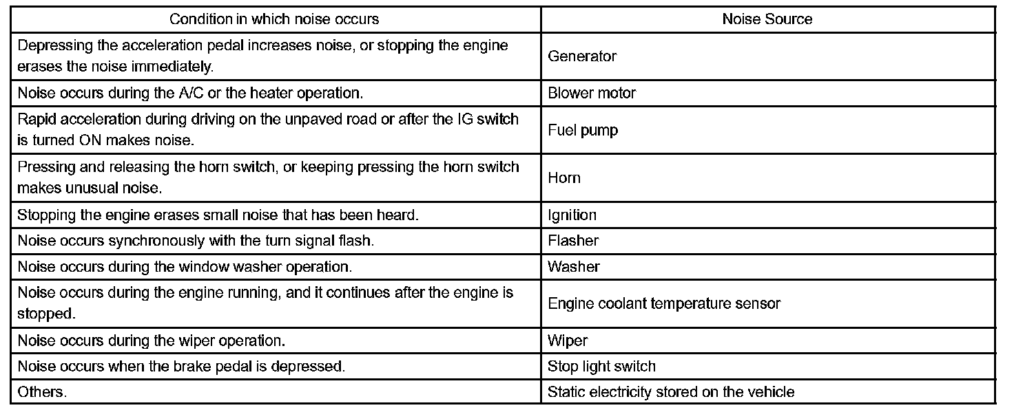 - Make sure first that there is no noise from outside. Failure to do so makes it difficult to detect the noise source and leads to misunderstanding.