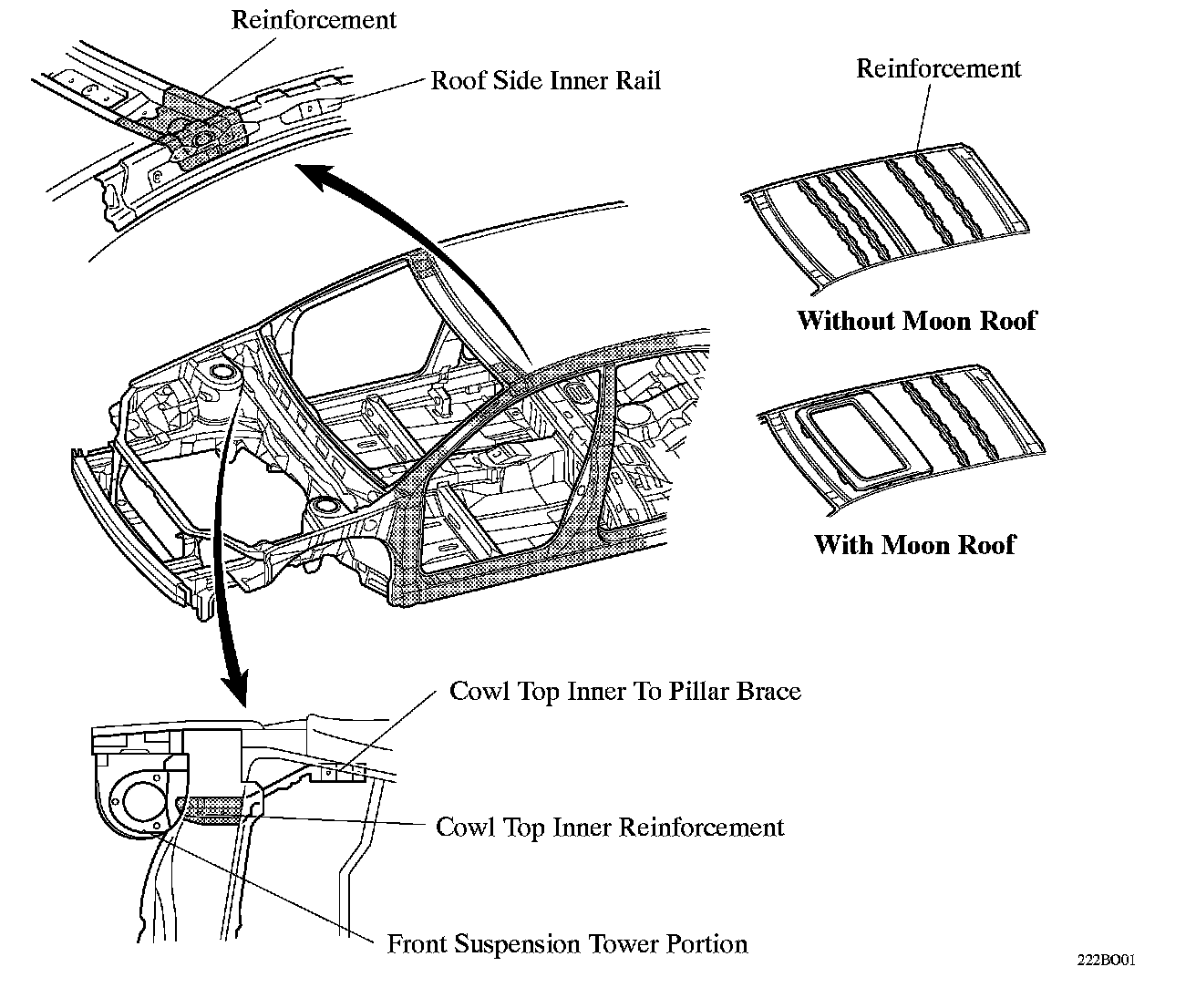 However, the reinforcements fitted on the moon roof model are shaped and arranged differently.