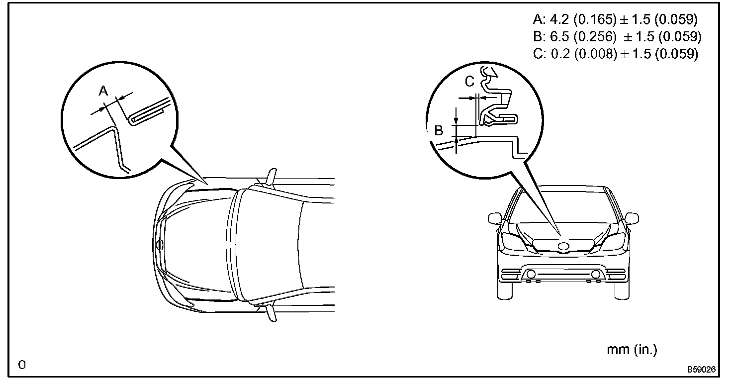 a. Check that the clearance measurements of areas A to C are within the standard range.