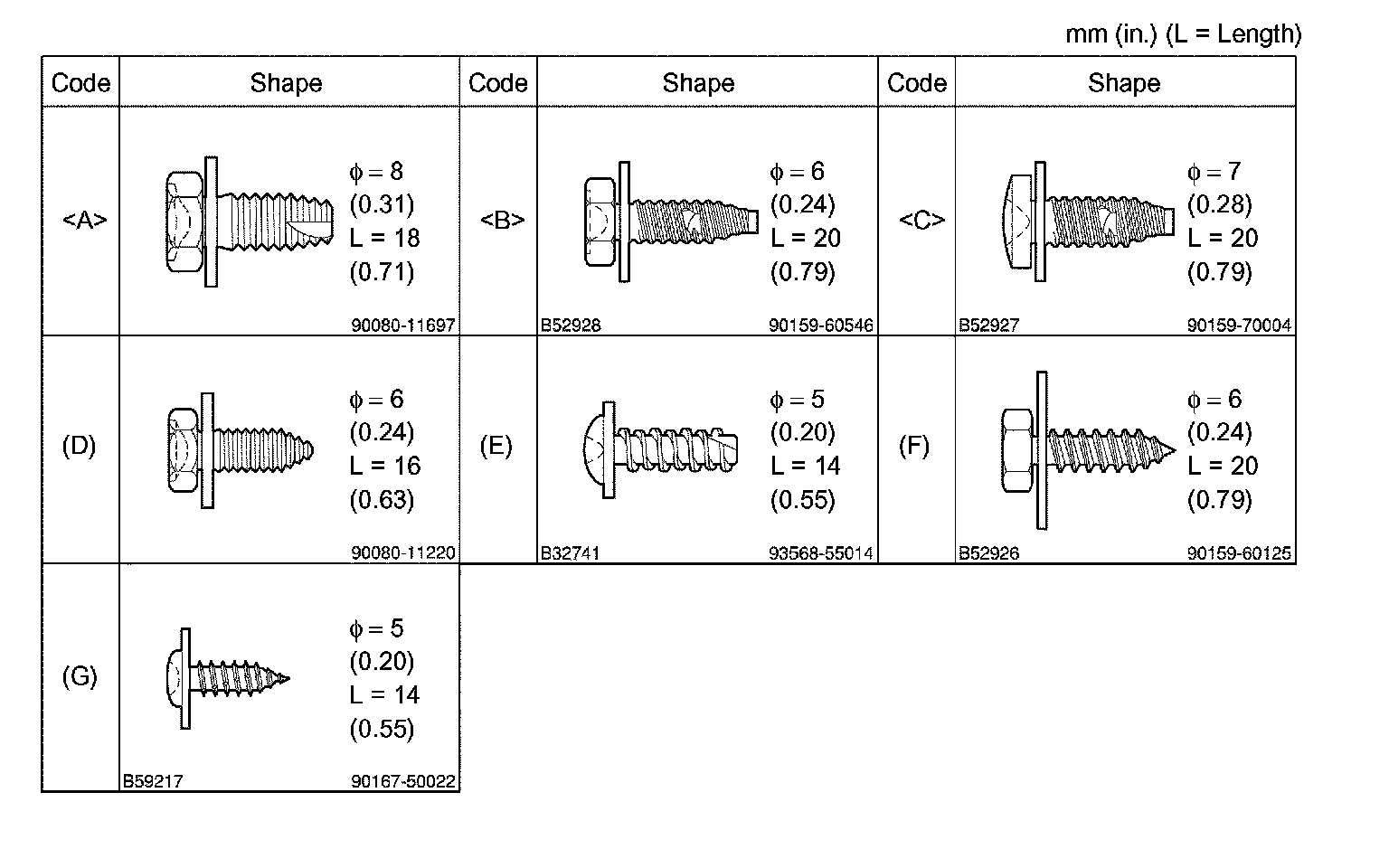 1. TABLE OF BOLT, SCREW AND NUT