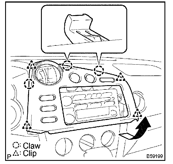 b. Pull out the instrument cluster finish panel center No.2.