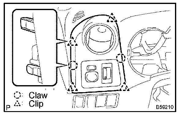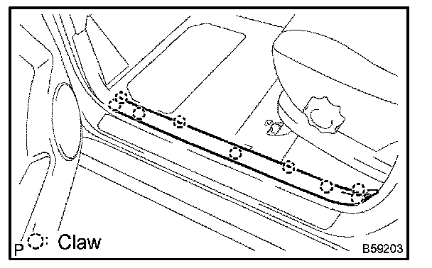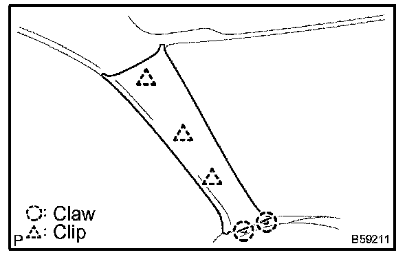 a. Using a moulding remover, disengage the 4 clips and 3 claws.