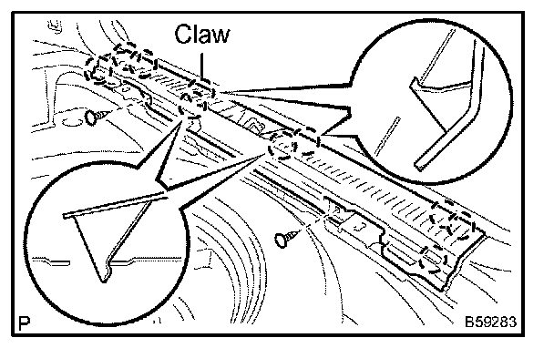 b. Using a screwdriver, remove the cowl side trim board RH.