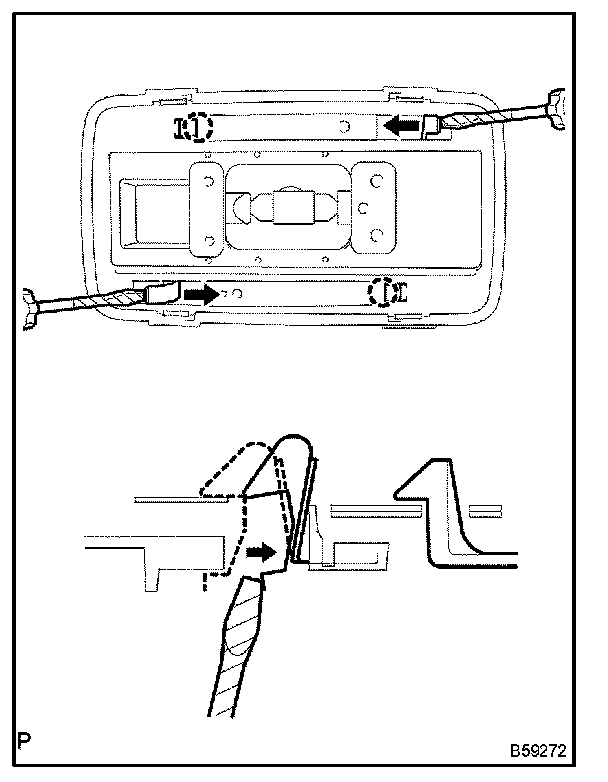 b. Using a screwdriver, remove the room lamp assembly No.1, as shown in the illustration.