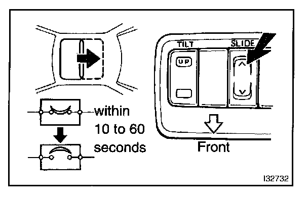 b. With the sliding roof in the fully opened position, hold the sliding roof switch in the "CLOSE" side and check that the sliding roof begins to close within 60 seconds.