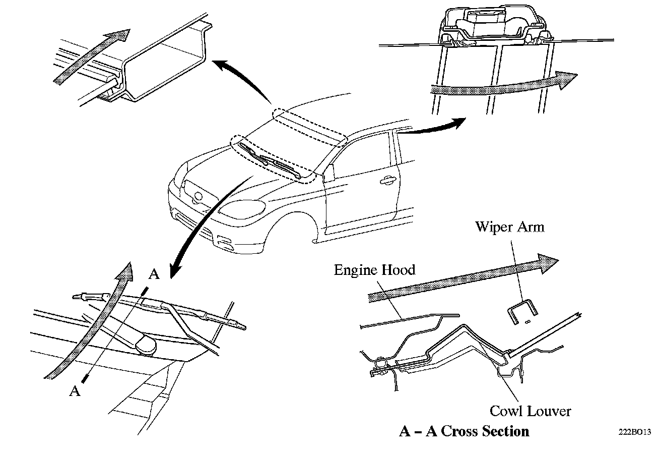 ^ The cowl louver and wiper arms have been optimally located to reduce wind noise from the engine compartment to the front windshield.