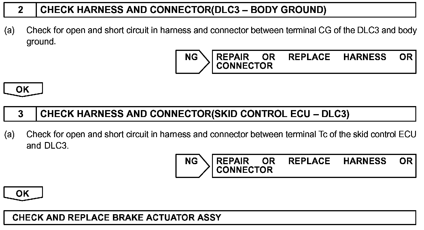 Connecting terminals Tc and CG of the DLC3 causes the ECU to display the DTC by flashing the ABS warning light.