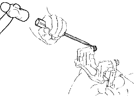 c. Using a socket wrench (19 mm) and hammer, drive the 2 bush dust boots to the disc brake cylinder mounting.