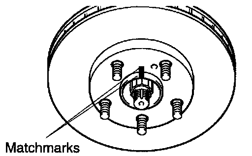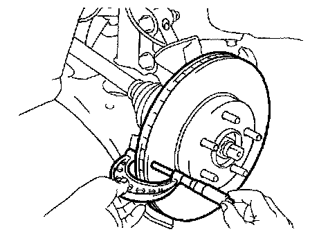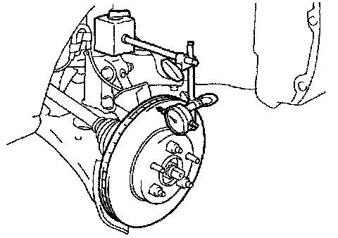 c. If the disc runout is the maximum value or greater, check the bearing play in the axial direction and check the axle hub runout. If the bearing play and axle hub runout are normal, adjust the disc runout or grind it on an "On Car" brake lathe.