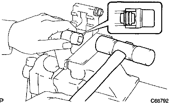 b. Hold the cylinder slide pin and remove the 2 bolts.